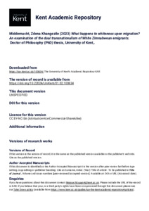 Middernacht, Zdena Khangezile (2023) What happens to whiteness upon migration? An examination of the dual transnationalism of White Zimnabwean emigrants. Doctor of Philosophy (PhD) thesis, University of Kent,. (doi:10.22024/UniKent/01.02.100634) (KAR id:100634)