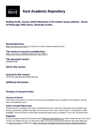 Dolding-Smith, Jessica (2023) Maturation of the modern human skeleton. Doctor of Philosophy (PhD) thesis, University of Kent,. (doi:10.22024/UniKent/01.02.100671) (KAR id:100671)
