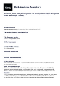 Mohammed, Sideeq (2025) Necrocapitalism. In: Encyclopaedia of Critical Management Studies. Edward Elgar. (In press) (KAR id:101422)