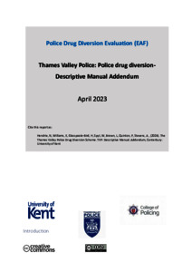 Hendrie, N. and Williams, E. and Glasspool-Bird, H. and Spyt, W. and Brown, L. and Quinton, P. and Stevens, A. (2023) The Thames Valley Police Drug Diversion Scheme. TVP: Descriptive Manual. Manual. University of Kent (KAR id:101846)