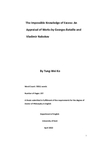 Ko, Tung-Wei (2023) The Impossible Knowledge of Excess: An Appraisal of Works by Georges Bataille and Vladimir Nabokov. Doctor of Philosophy (PhD) thesis, University of Kent,. (doi:10.22024/UniKent/01.02.101955) (KAR id:101955)