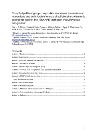Hilton, Kira, Tolley, Howard, Ortega-Roldan, Jose L., Thompson, Gary S., Sutton, Prof. Mark, Hind, Charlotte K., Hiscock, Jennifer R. (2023) Phospholipid headgroup composition modulates the molecular interactions and antimicrobial effects of sulfobetaine zwitterionic detergents against the “ESKAPE” pathogen Pseudomonas aeruginosa. Chemical Communications, 59 (70). pp. 10504-10507. ISSN 1359-7345. E-ISSN 1364-548X. (doi:10.1039/D3CC02320F) (KAR id:102336)