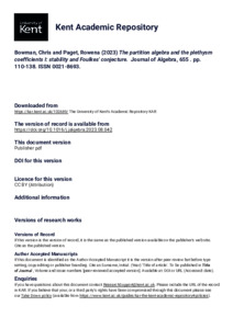 Bowman, Chris, Paget, Rowena (2023) The partition algebra and the plethysm coefficients I: stability and Foulkes' conjecture. Journal of Algebra, 655 . pp. 110-138. ISSN 0021-8693. E-ISSN 1090-266X. (doi:10.1016/j.jalgebra.2023.08.042) (KAR id:102689)