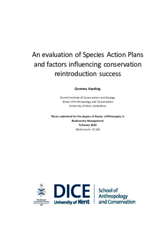 Harding, Gemma (2023) An evaluation of Species Action Plans and factors influencing conservation reintroduction success. Doctor of Philosophy (PhD) thesis, University of Kent,. (doi:10.22024/UniKent/01.02.102692) (KAR id:102692)