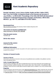 Burchell, Humphrey, Larose, Octave, Kaleba, Sophie, Marr, Stefan (2023) Don't Trust Your Profiler: An Empirical Study on the Precision and Accuracy of Java Profilers. In: MPLR 2023: Proceedings of the 20th ACM SIGPLAN International Conference on Managed Programming Languages and Runtimes. MPLR 2023. MPLR'23 . pp. 100-113. ACM ISBN 979-8-4007-0380-5. (doi:10.1145/3617651.3622985) (KAR id:102818)