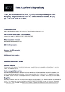 Larkin, Rachel, Woodcock Ross, J (2024) Unaccompanied Migrant Girls: Navigating Religious Girlhood in the UK. Ethnic and Racial Studies, 47 (15). pp. 3328-3348. ISSN 0141-9870. E-ISSN 1466-4356. (doi:10.1080/01419870.2024.2307400) (KAR id:104627)