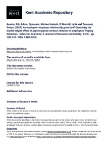 Asante, Eric Adom, Gyensare, Michael Asiedu, El Bouzidi, Laila, Twumasi, Evelyn (2025) An employee–employer relationship gone bad? Examining the double‐edged effect of psychological contract violation on employees' helping behaviors. Industrial Relations: A Journal of Economy and Society, 64 (1). pp. 103-124. ISSN 1468-232X. E-ISSN 1468-232X. (doi:10.1111/irel.12358) (KAR id:104946)