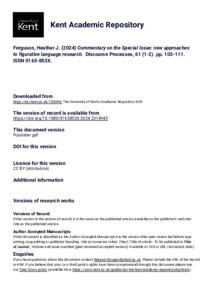 Ferguson, Heather J. (2024) Commentary on the Special Issue: new approaches to figurative language research. Discourse Processes, 61 (1-2). pp. 103-111. ISSN 0163-853X. E-ISSN 1532-6950. (doi:10.1080/0163853X.2024.2314945) (KAR id:105049)