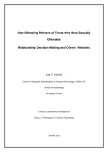 Kamitz, Lea C. (2024) Non-offending partners of those who Have sexually offended: relationship decision-making and others' attitudes. Doctor of Philosophy (PhD) thesis, University of Kent,. (doi:10.22024/UniKent/01.02.105399) (KAR id:105399)