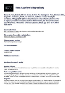 Boonants, Tom, Goderis, Steven, Soens, Bastien, Van Maldeghem, Flore, Chernonozhkin, Stepan M., Vanhaecke, Frank, van Ginneken, Matthias, Snoeck, Christophe, Claeys, Philippe (2024) Elemental and oxygen isotopic fractionation recorded in highly vaporized cosmic spherules from Widerøefjellet, Sør Rondane Mountains (East Antarctica). Meteoritics & Planetary Science, 59 (9). pp. 2213-2240. ISSN 1086-9379. E-ISSN 1945-5100. (doi:10.1111/maps.14188) (KAR id:106042)
