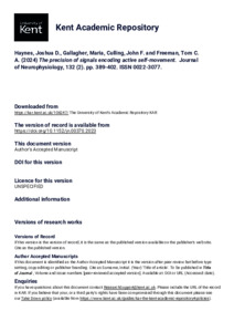 Haynes, Joshua D., Gallagher, Maria, Culling, John F., Freeman, Tom C. A. (2024) The precision of signals encoding active self-movement. Journal of Neurophysiology, 132 (2). pp. 389-402. ISSN 0022-3077. E-ISSN 1522-1598. (doi:10.1152/jn.00370.2023) (KAR id:106247)