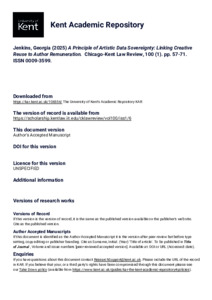 Jenkins, Georgia (2025) A Principle of Artistic Data Sovereignty: Linking Creative Reuse to Author Remuneration. Chicago-Kent Law Review, 100 (1). pp. 57-71. ISSN 0009-3599. (KAR id:106556)
