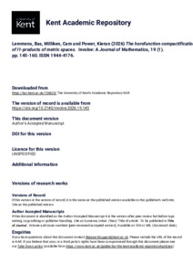 Lemmens, Bas, Milliken, Cam, Power, Kieran (2026) The horofunction compactification of l1-products of metric spaces. Involve: A Journal of Mathematics, 19 (1). pp. 145-160. ISSN 1944-4176. (doi:10.2140/involve.2026.19.145) (KAR id:106628)