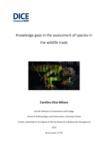 Milson, Caroline Elise (2024) Knowledge gaps in the assessment of species in the wildlife trade. Master of Science by Research (MScRes) thesis, University of Kent,. (doi:10.22024/UniKent/01.02.106665) (KAR id:106665)