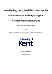 Edrich, Elizabeth Sarah Meta (2024) Investigating the potential of mitochondrial inhibition as an antifungal target in Cryptococcus neoformans. Doctor of Philosophy (PhD) thesis, University of Kent,. (doi:10.22024/UniKent/01.02.106955) (KAR id:106955)
