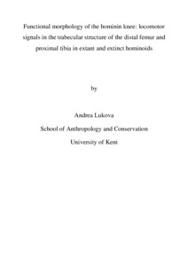 Lukova, Andrea (2024) Functional morphology of the hominin knee: locomotor signals in the trabecular structure of the distal femur and proximal tibia in extant and extinct hominoids. Doctor of Philosophy (PhD) thesis, University of Kent,. (doi:10.22024/UniKent/01.02.107491) (KAR id:107491)