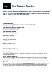 Basha i Novosejt, Aurelie (2024) Book Review: Milton Friedman: the Last Conservative. Review of: Milton Friedman: the Last Conservative by Burns, Jennifer. International Affairs, 100 (2). pp. 862-863. ISSN 0020-5850. (doi:10.1093/ia/iiae024) (KAR id:108104)