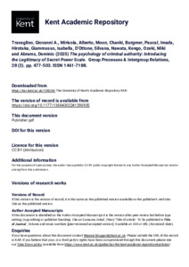 Travaglino, Giovanni A., Mirisola, Alberto, Moon, Chanki, Burgmer, Pascal, Imada, Hirotaka, Giammusso, Isabella, D’Ottone, Silvana, Nawata, Kengo, Ozeki, Miki, Abrams, Dominic and others. (2025) The psychology of criminal authority: Introducing the Legitimacy of Secret Power Scale. Group Processes & Intergroup Relations, 28 (3). pp. 477-503. ISSN 1461-7188. (doi:10.1177/13684302241290935) (KAR id:108204)