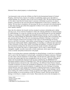 Sophie, Vigneron, ed. (2024) From cultural property to cultural heritage. International Journal of Cultural Property, 31 (1). pp. 1-3. ISSN 0940-7391. (doi:10.1017/S0940739124000201) (KAR id:108228)