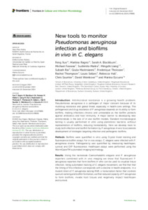 Xue, Feng, Ragno, Martina, Blackburn, Sarah Amy, Fasseas, Michael, Maitra, Sushmita, Liang, Mingzhi, Rai, Subash, Mastroianni, Giulia, Tholozan, Frederique, Thompson, Rachel, and others. (2024) New tools to monitor Pseudomonas aeruginosa infection and biofilms in vivo in C. elegans. Frontiers in Cellular and Infection Microbiology, 14 . Article Number 1478881. E-ISSN 2235-2988. (doi:10.3389/fcimb.2024.1478881) (KAR id:108304)