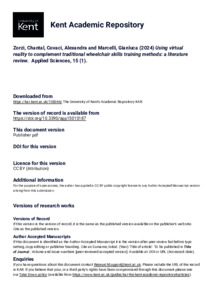 Zorzi, Chantal, Covaci, Alexandra, Marcelli, Gianluca (2024) Using virtual reality to complement traditional wheelchair skills training methods: a literature review. Applied Sciences, 15 (1). Article Number 187. E-ISSN 2076-3417. (doi:10.3390/app15010187) (KAR id:108366)