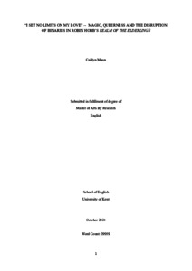 Moon, Caitlyn (2024) "I set no limits on my love" - magic, queerness and the disruption of binaries in Robin Hobb's Real of the Elderlings. Master of Arts by Research (MARes) thesis, University of Kent,. (doi:10.22024/UniKent/01.02.108514) (KAR id:108514)