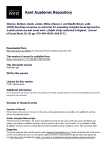 Silarova, Barbora, Caiels, James, Milne, Alisoun J., Beadle-Brown, Julie (2025) Reaching consensus on outcomes for evaluating strengths based approaches in adult social care and social work: a Delphi study conducted in England. Journal of Social Work, 25 (4). pp. 470-499. ISSN 1468-0173. (doi:10.1177/14680173251318532) (KAR id:108663)