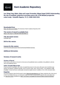 Lee, Shing Fung, Niksic, Maja, Luque-Fernandez, Miguel Angel (2025) Understanding the role of metabolic syndrome in prostate cancer risk: A UK Biobank prospective cohort study. Scientific Reports, 15 (1). Article Number 2345. ISSN 2045-2322. (doi:10.1038/s41598-025-85501-5) (KAR id:108664)