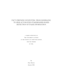 Altuncu, Enes (2025) Fact-checking ecosystem: from modelling to semi-automated stakeholder-based detection of false information. Doctor of Philosophy (PhD) thesis, University of Kent,. (doi:10.22024/UniKent/01.02.108725) (KAR id:108725)