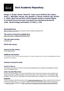 Emogor, A. Emogor, Wasser, Samuel K., Coad, Lauren, Balmford, Ben, Ingram, Daniel J., Wijesinghe, Amayaa, Atsu, Benedict A., Bassey, Frederick, Ogu, Dominic S., Okafor, Ngozi, and others. (2025) Pangolin hunting in Southeast Nigeria is motivated more by local meat consumption than international demand for scales. Nature Ecology and Evolution, 9 (1358). p. 1349. E-ISSN 2397-334X. (doi:10.1038/s41559-025-02734-3) (KAR id:108752)