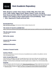 Blake, Margaret and Lambert, Claire and Gregory, Freddie and Ridge, Mary-Clare and Dale, Laura and Tobias, Stadler and Figgett, Davina and Geddes, Graham and Towers, Ann-Marie and Rand, Stacey and Palmer, Sinead and Allan, Stephen and Silarova, Barbora and Brookes, Nadia (2025) The Adult Social Care Workforce and their Work-related Quality of Life: Findings on Work-related Quality of Life and Wellbeing – Wave 1. Other. Department of Health and Social Care (KAR id:108896)