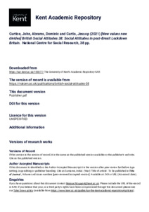 Curtice, John, Abrams, Dominic, Curtis, Jessop (2021) [New values new divides] British Social Attitudes 38: Social Attitudes in post-Brexit Lockdown Britain. National Centre for Social Research, 38 pp. (KAR id:109377)