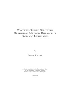 Kaleba, Sophie (2025) Context-guided splitting: optimising method dispatch in dynamic languages. Doctor of Philosophy (PhD) thesis, University of Kent,. (doi:10.22024/UniKent/01.02.109418) (KAR id:109418)