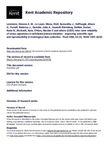 Lemmers, Simone A. M., Le Luyer, Mona, Stoll, Samantha J., Hoffnagle, Alison G., Ferrell, Rebecca J., Gamble, Julia A., Guatelli-Steinberg, Debbie, Gurian, Kaita N., McGrath, Kate, O'Hara, Mackie C, and others. (2025) Inter-rater reliability of stress signatures in exfoliated primary dentition - Improving scientific rigor and reproducibility in histological data collection. PLoS ONE, 20 (3). Article Number e0318700. ISSN 1932-6203. (doi:10.1371/journal.pone.0318700) (KAR id:109478)