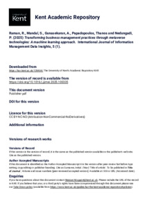 Raman, R., Mandal, S., Gunasekaran, A., Papadopoulos, Thanos, Nedungadi, P. (2025) Transforming business management practices through metaverse technologies: A machine learning approach. International Journal of Information Management Data Insights, 5 (1). Article Number 100335. E-ISSN 2667-0968. (doi:10.1016/j.jjimei.2025.100335) (KAR id:109484)