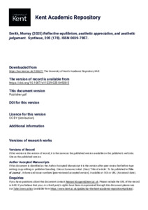 Smith, Murray (2025) Reflective equilibrium, aesthetic appreciation, and aesthetic judgement. Synthese, 205 (178). ISSN 0039-7857. E-ISSN 1573-0964. (doi:10.1007/s11229-025-04928-5) (KAR id:109627)