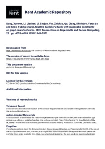 Dong, Xuewen, Li, Jiachen, Li, Shujun, You, Zhichao, Qu, Qiang, Kholodov, Yaroslav, Shen, Yulong (2025) Adaptive backdoor attacks with reasonable constraints on graph neural networks. IEEE Transactions on Dependable and Secure Computing, 22 . pp. 4053-4069. ISSN 1545-5971. E-ISSN 1941-0018. (doi:10.1109/TDSC.2025.3543020) (KAR id:109705)