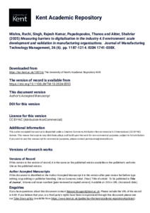 Mishra, Ruchi, Singh, Rajesh Kumar, Papadopoulos, Thanos, Akter, Shahriar (2025) Measuring barriers to digitalisation in the industry 4.0 environment: scale development and validation in manufacturing organisations. Journal of Manufacturing Technology Management, 36 (6). pp. 1187-1214. ISSN 1741-038X. (doi:10.1108/JMTM-10-2024-0593) (KAR id:109726)