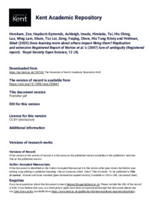 Horsham, Zoe, Haydock-Symonds, Ashleigh, Imada, Hirotaka, Tai, Hiu Ching, Lau, Wing Lam, Shum, Tsz Lui, Zeng, Yuqing, Chow, Hiu Tung Kristy, Feldman, Gilad (2025) Does learning more about others impact liking them? Replication and extension Registered Report of Norton et al.’s (2007) lure of ambiguity (Registered report). Royal Society Open Science, 12 (4). Article Number 250441. E-ISSN 2054-5703. (doi:10.1098/rsos.250441) (KAR id:109799)