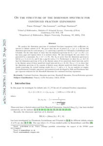 Lemmens, Bas and Chitanga, Painos and Nussbaum, Roger (2025) On the structure of the dimension spectrum for continued fraction expansions. [Preprint] (Submitted) (doi:10.48550/arXiv.2504.20878) (KAR id:109801)