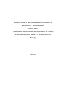 Waldock, Colin (2025) Examining the impact of prescribing medication on the role identity of physiotherapists - a mixed methods study. Doctor of Philosophy (PhD) thesis, University of Kent, nil. (doi:10.22024/UniKent/01.02.109815) (KAR id:109815)