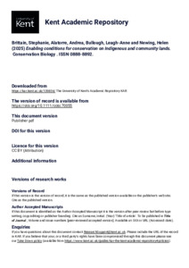 Brittain, Stephanie, Alatorre, Andrea, Bullough, Leagh-Anne, Newing, Helen (2025) Enabling conditions for conservation on Indigenous and community lands. Conservation Biology, . Article Number e70055. ISSN 0888-8892. E-ISSN 1523-1739. (doi:10.1111/cobi.70055) (KAR id:109856)