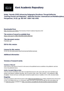 Kolajo, Yetunde (2025) Advancing Pedagogical Excellence Through Reflective Teaching Practice and Adaptation. Reflective Practice: International and Multidisciplinary Perspectives, 26 (6). pp. 832-847. ISSN 1462-3943. (doi:10.1080/14623943.2025.2504143) (KAR id:109894)