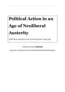 Geach, Rebecca (2025) Political Action in an Age of Neoliberal Austerity. Doctor of Philosophy (PhD) thesis, University of Kent,. (doi:10.22024/UniKent/01.02.109945) (KAR id:109945)