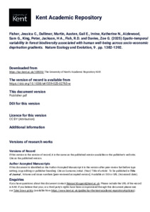 Fisher, Jessica C., Dallimer, Martin, Austen, Gail E., Irvine, Katherine N., Aizlewood, Sam G., King, Peter, Jackson, H A., Fish, R.D., Davies, Zoe G. (2025) Spatio-temporal variability in forest biodiversity associated with human well-being across socio-economic deprivation gradients. Nature Ecology and Evolution, 9 . pp. 1382-1392. E-ISSN 2397-334X. (doi:10.1038/s41559-025-02765-w) (KAR id:109959)