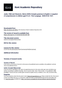 Janke, Vikki, Chamorro, Gloria (2025) Complex grammar in English: A snapshot of comprehension in children aged 5 to 8. First Language, . ISSN 0142-7237. (doi:10.1177/01427237251347708) (KAR id:109991)