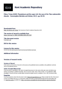Fitton, Triona (2025) Thanaleisure and the super-rich: the case of the Titan submersible disaster. Consumption Markets and Culture, 28 (1). pp. 28-39. E-ISSN 1025-3866. (doi:10.1080/10253866.2025.2515149) (KAR id:110268)