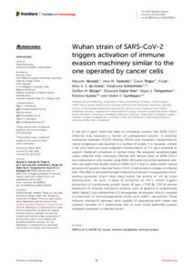 Abooali, Maryam, Yasinska, Inna M., Thapa, Gauri, Lei, Xi, da Costa, Kelly A. S., Schlichtner, Stephanie, Berger, Steffen M., Fasler-Kan, Elizaveta, Temperton, Nigel J., Vuono, Romina, and others. (2025) Wuhan strain of SARS-CoV-2 triggers activation of immune evasion machinery similar to the one operated by cancer cells. Frontiers in Immunology, 16 . ISSN 1664-3224. (doi:10.3389/fimmu.2025.1599352) (KAR id:110337)
