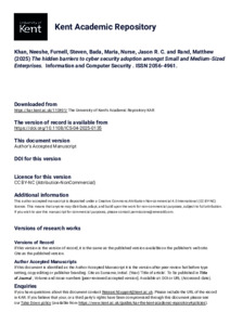Khan, Neeshe, Furnell, Steven, Bada, Maria, Nurse, Jason R. C., Rand, Matthew (2025) The hidden barriers to cyber security adoption amongst Small and Medium-Sized Enterprises. Information and Computer Security, . ISSN 2056-4961. (doi:10.1108/ICS-04-2025-0135) (KAR id:110491)