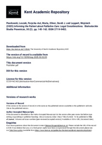 Pawłowski, Leszek, Forycka-Ast, Maria, Oliver, David J., Leppert, Wojciech (2025) Informing the Patient about Palliative Care: Legal Considerations. Białostockie Studia Prawnicze, 30 (2). pp. 145-162. ISSN 2719-9452. (doi:10.15290/bsp.2025.30.02.09) (KAR id:110564)